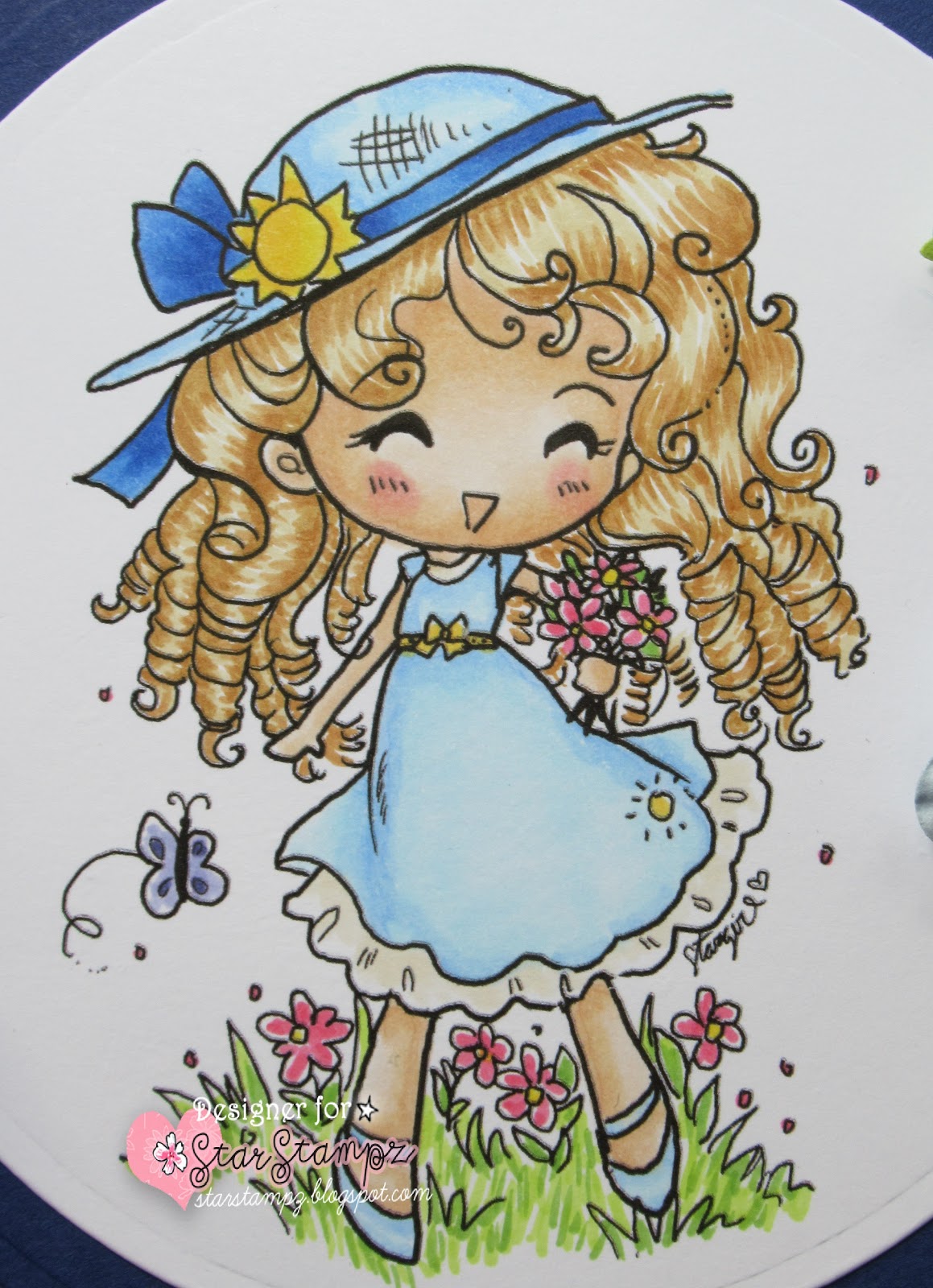 This month the theme is Summer and I have used this image called Spring Sunshine which I have coloured using Copics. You can find her and all the other fabulous images in the store HERE